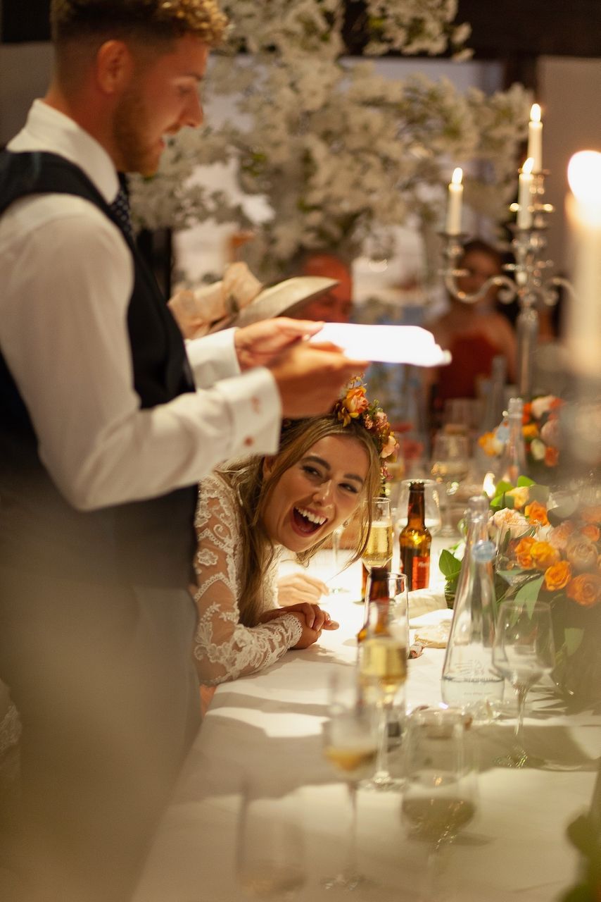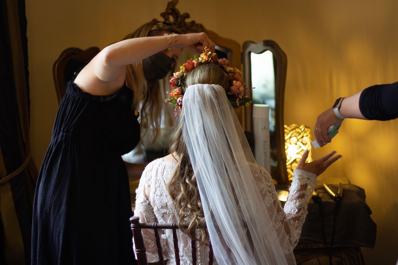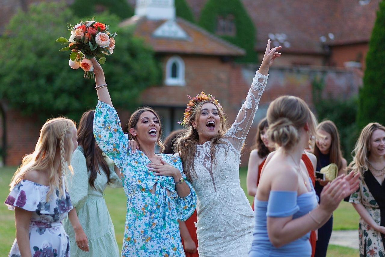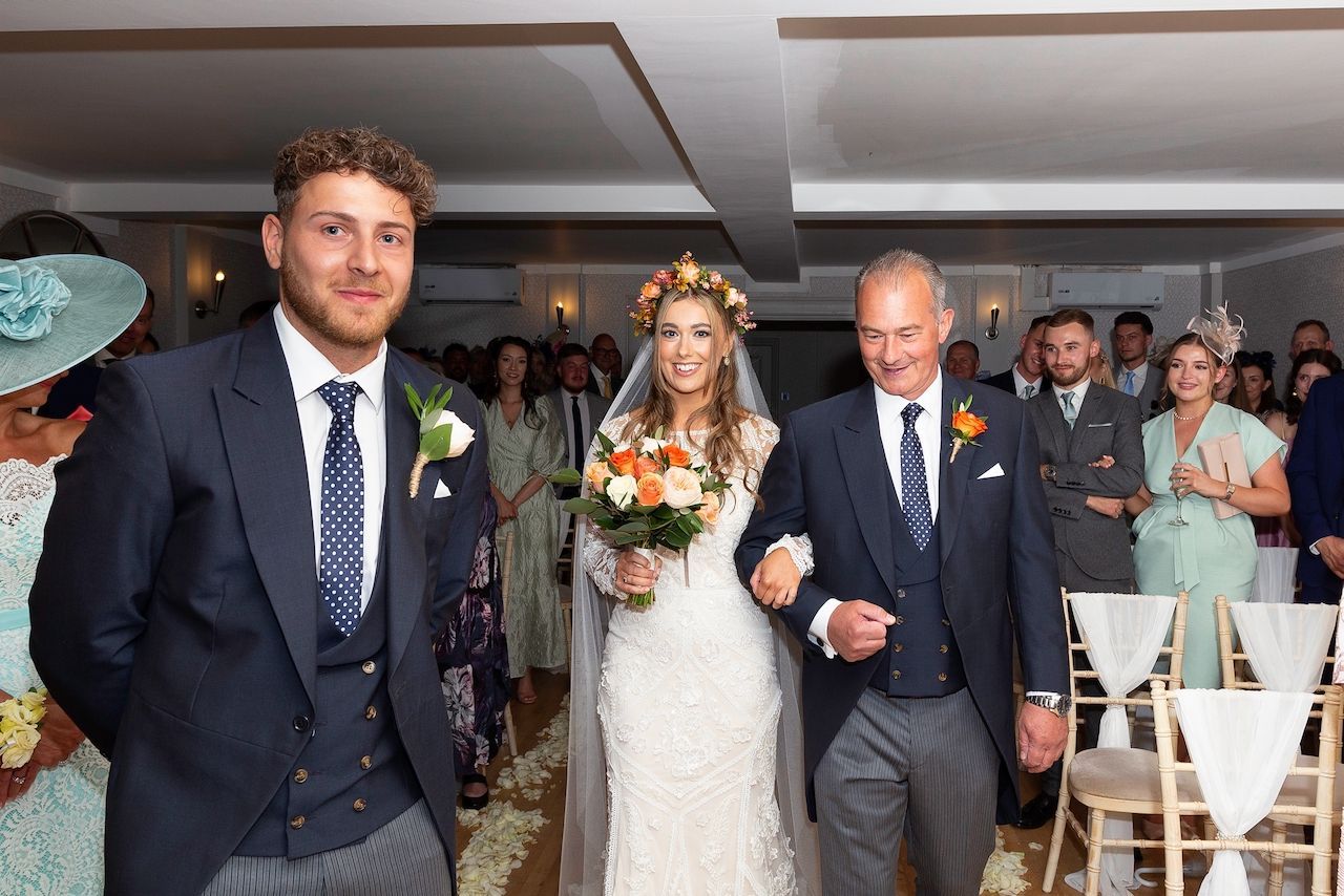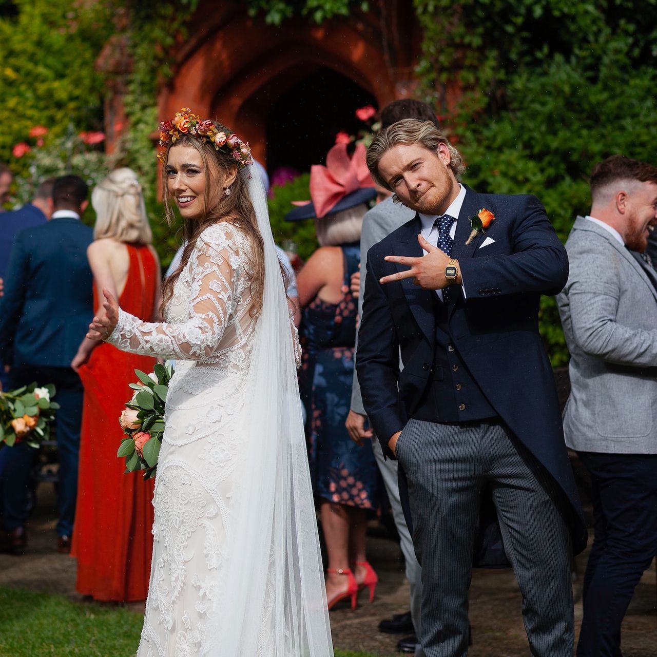 I had a chance meeting with Jodie & James to begin this story, at the time I was hosting a black tie charity ball at Lynford Hall in aid of the St Nicholas Hospice Bury St Edmunds when Jodie introduced herself by my wife who knew her previously from her own charity work. Jodie explained that she was in the midst of planning a very unique affair, a music festival inspired wedding in the nearby village of Weeting. After outlining her vision for the day my face must have been a picture! thankfully I landed the gig of photography. The day of the wedding… The Sun was shining for Jodie, I remember arriving at her parents’ house which was a hive of activity, so many bridesmaids, flowers and wellie boots! When Jodie was ready she looked beautiful, a brilliant white dress and the perfect addition of flowers in the form of a bouquet and a flower crown in her hair, everyone looked very festival chic. Jodies father and James had put months of work into the preparations for the wedding, leading up to and including the morning of. when I arrived at the venue it blew me away, a miniature Glastonbury had indeed been created. Flags fluttered in the breeze and the wedding guests made their way through them to a Tee Pee centre stage surrounded by straw bales. The bridal party arrived together in style on a tractor and trailer. The ceremony was truly magical, and everyone enjoyed the day listening to music surrounded by food vendors and entertainers, The highlight of my day had to be photographing the couple crowd surfing into the sunset. Here are a few images from an extraordinary day…