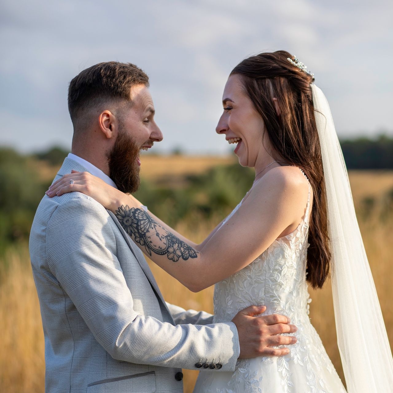 Glen Lodge Bawburgh was the venue for their special day, and it turned out to be another hot one! The ceremony took place outside in the sunshine, and after the confetti was thrown the wedding guests relaxed in the beautiful setting that is Glen Lodge. After the wedding breakfast, the couple were let loose on the estate in golf buggies for some photographs in the glorious afternoon sunshine. The big Norfolk skies did not disappoint.
