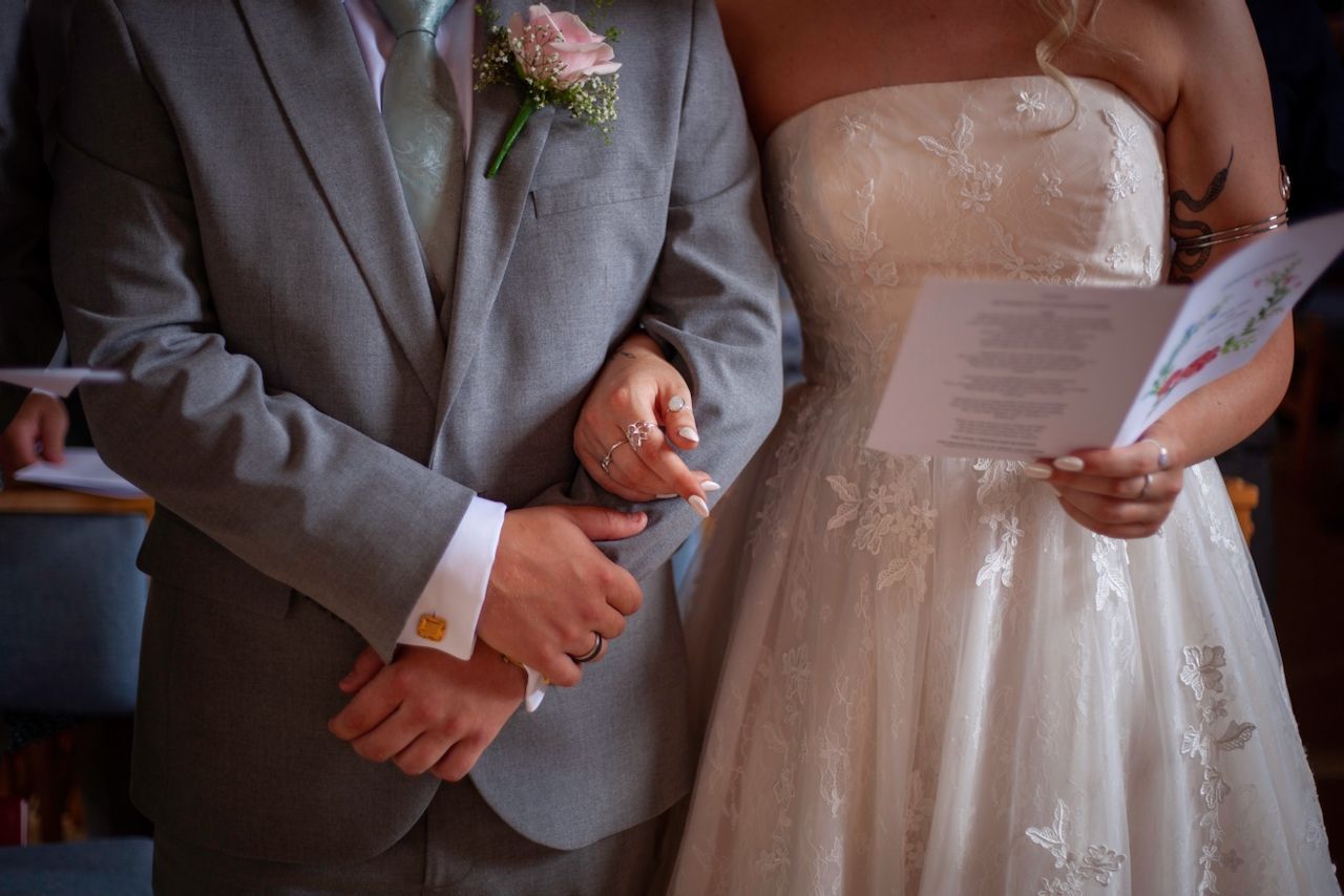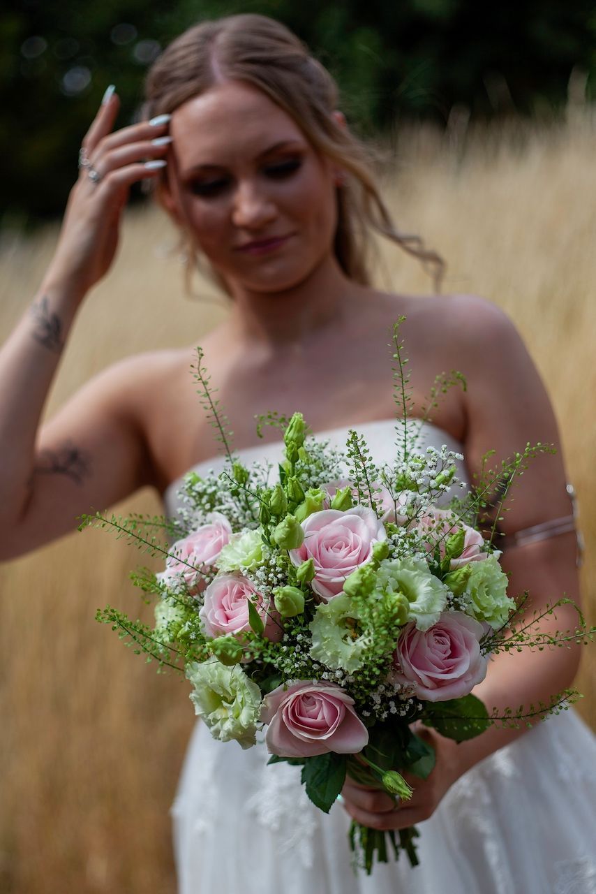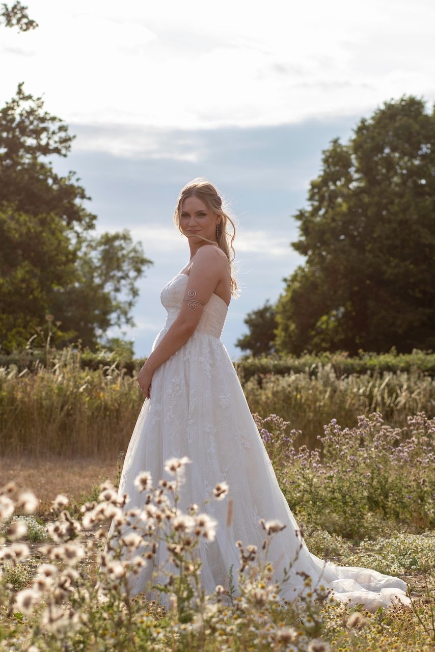 I had a chance meeting with Jodie & James to begin this story, at the time I was hosting a black tie charity ball at Lynford Hall in aid of the St Nicholas Hospice Bury St Edmunds when Jodie introduced herself by my wife who knew her previously from her own charity work. Jodie explained that she was in the midst of planning a very unique affair, a music festival inspired wedding in the nearby village of Weeting. After outlining her vision for the day my face must have been a picture! thankfully I landed the gig of photography. The day of the wedding… The Sun was shining for Jodie, I remember arriving at her parents’ house which was a hive of activity, so many bridesmaids, flowers and wellie boots! When Jodie was ready she looked beautiful, a brilliant white dress and the perfect addition of flowers in the form of a bouquet and a flower crown in her hair, everyone looked very festival chic. Jodies father and James had put months of work into the preparations for the wedding, leading up to and including the morning of. when I arrived at the venue it blew me away, a miniature Glastonbury had indeed been created. Flags fluttered in the breeze and the wedding guests made their way through them to a Tee Pee centre stage surrounded by straw bales. The bridal party arrived together in style on a tractor and trailer. The ceremony was truly magical, and everyone enjoyed the day listening to music surrounded by food vendors and entertainers, The highlight of my day had to be photographing the couple crowd surfing into the sunset.  Here are a few images from an extraordinary day…