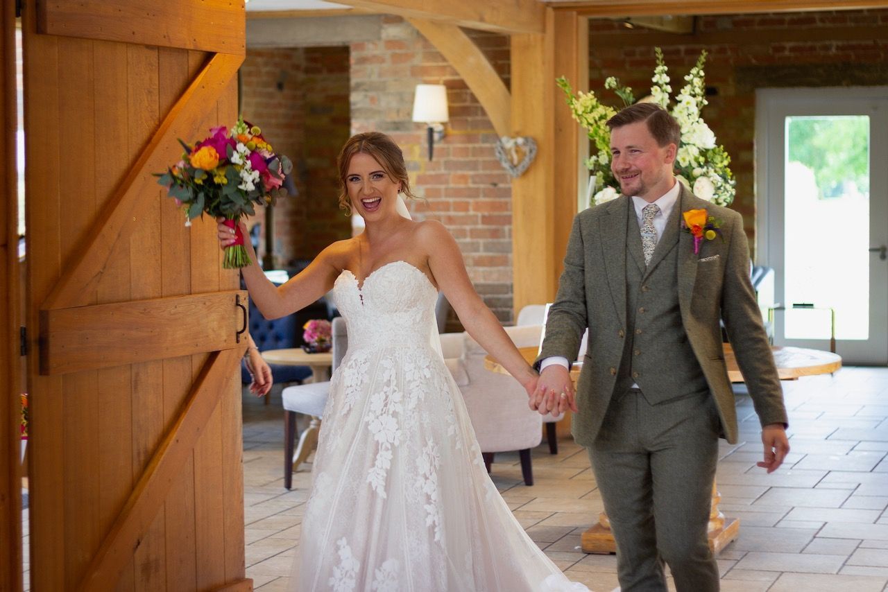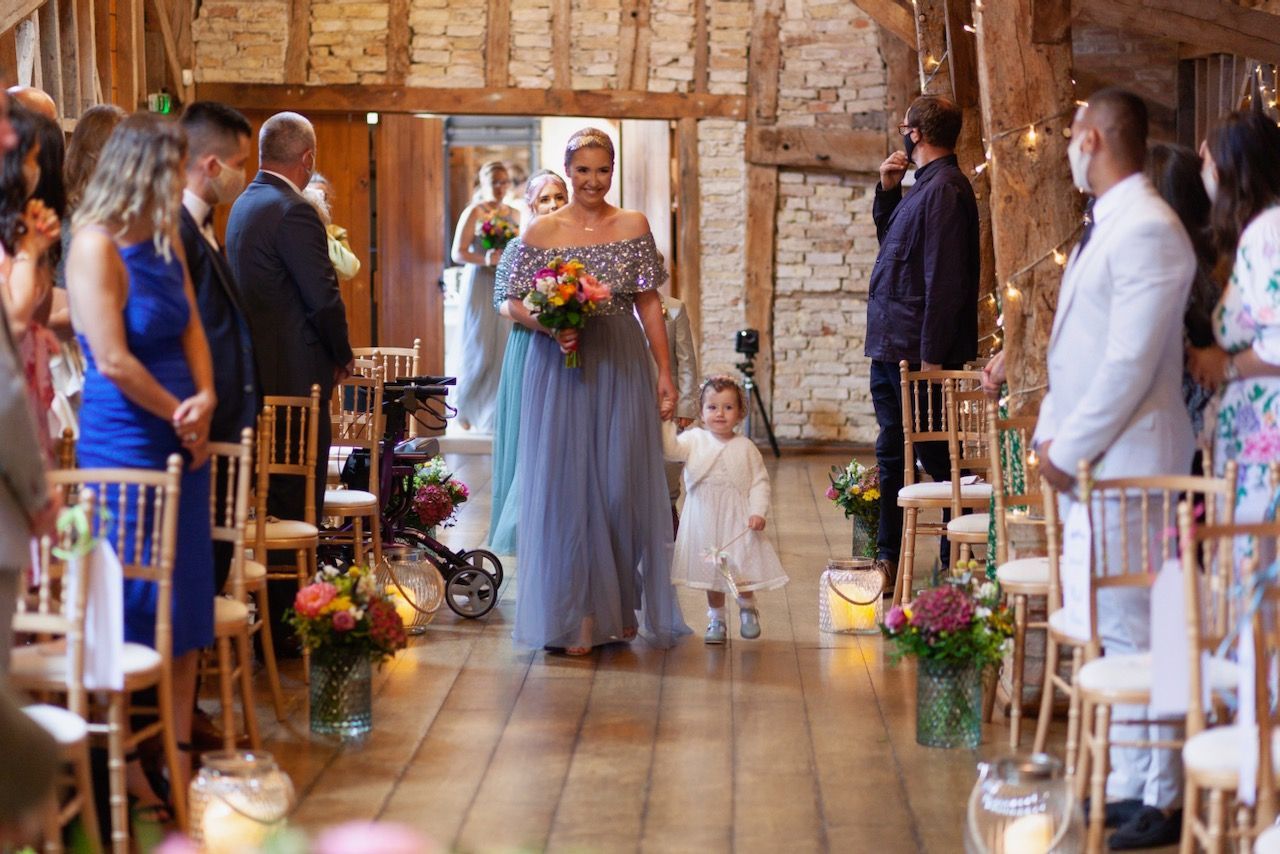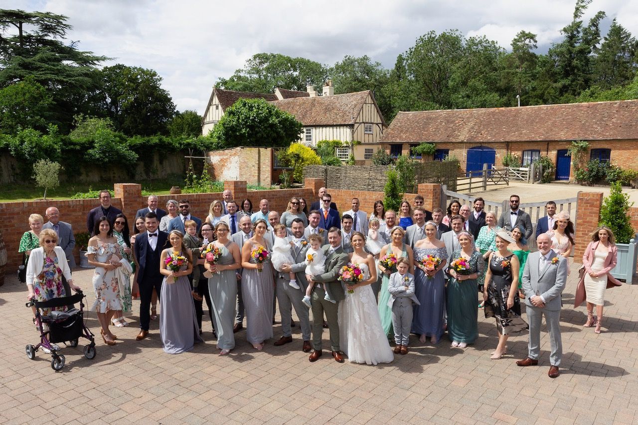 Sadie first contacted me way back in 2018, she was determined to get all of the right vendors for her big day and it made sense to book early to avoid disappointment. However the curse of covid played a part in all our lives, and Sadie & Daniels wedding had to be postponed, but ultimately when restrictions began to lift I was fortunate to photograph their wedding at Bassmead barns Cambridgeshire, along with just six members of the family, it was a very intimate affair. Over time when more restrictions were lifted, and Sadie & Daniel returned to Bassmead for a wedding blessing and a day of celebration with all her friends and family. As I was originally booked for the photography I photographed this day also, and I was so glad, in the end the couple were blessed to have two brilliant days of sunshine, which made for some beautiful photographs, and as Sadie pointed out, looking back she got to wear two dresses, which was a big win win for any bride.
