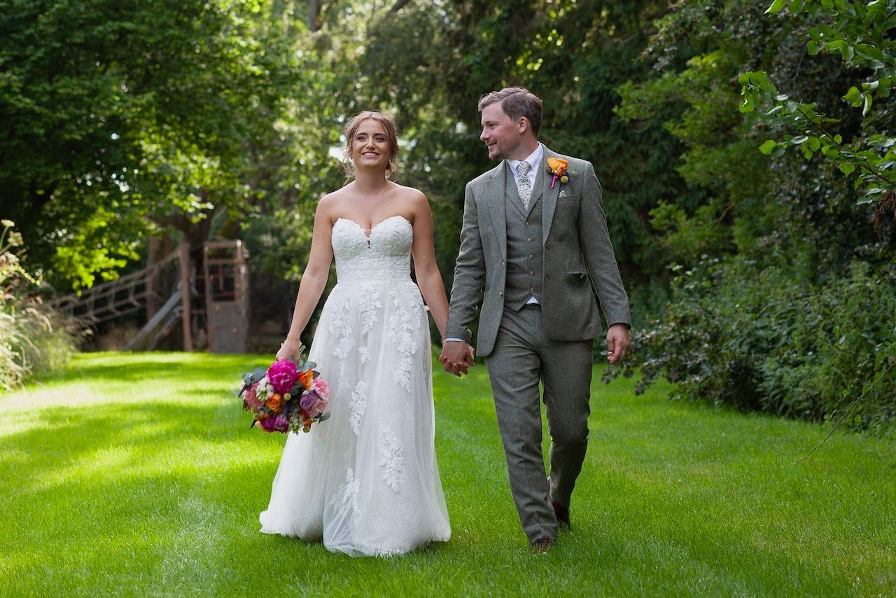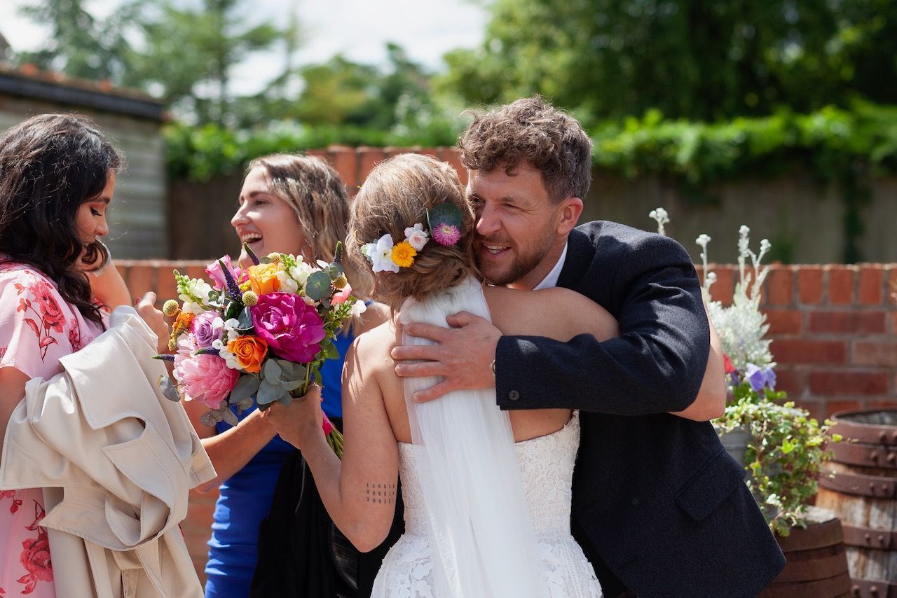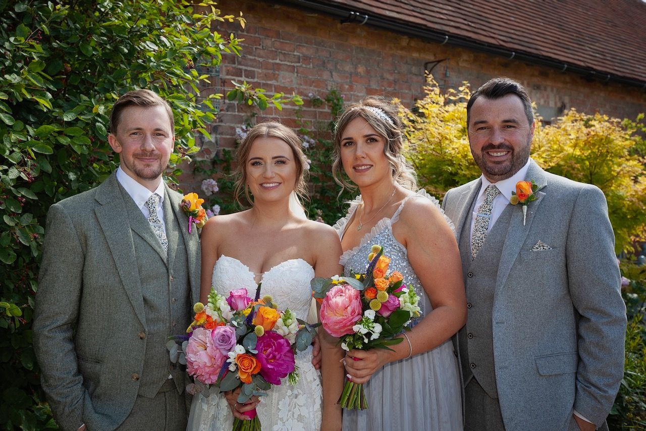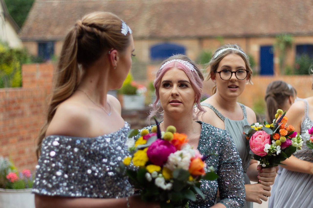 Sadie first contacted me way back in 2018, she was determined to get all of the right vendors for her big day and it made sense to book early to avoid disappointment. However the curse of covid played a part in all our lives, and Sadie & Daniels wedding had to be postponed, but ultimately when restrictions began to lift I was fortunate to photograph their wedding at Bassmead barns Cambridgeshire, along with just six members of the family, it was a very intimate affair. Over time when more restrictions were lifted, and Sadie & Daniel returned to Bassmead for a wedding blessing and a day of celebration with all her friends and family. As I was originally booked for the photography I photographed this day also, and I was so glad, in the end the couple were blessed to have two brilliant days of sunshine, which made for some beautiful photographs, and as Sadie pointed out, looking back she got to wear two dresses, which was a big win win for any bride.