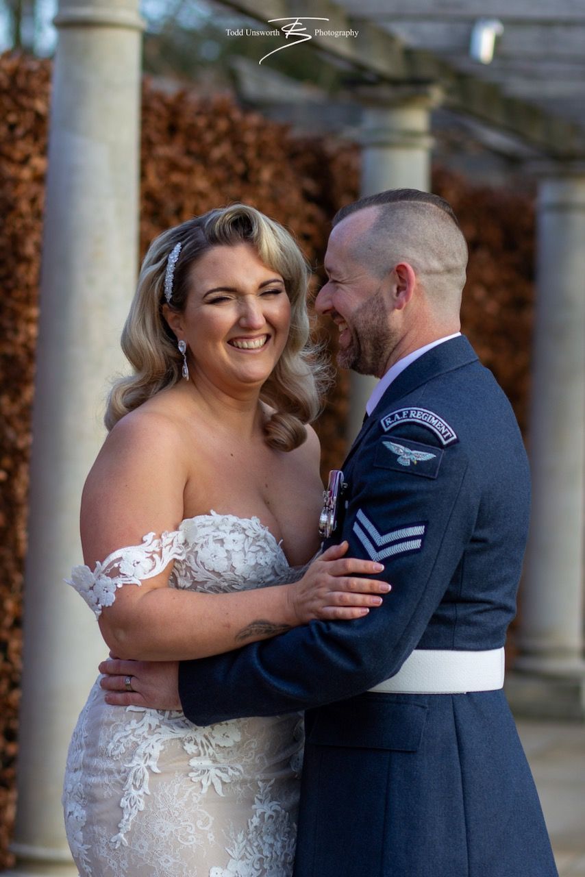Sam contacted me way back in 2019, we had a meeting and she told me that she was looking for a wedding that she never had? It transpired that Sam & Neil had already tied the knot on a Caribbean island a few years previously, but they both felt that something was missing that day and they both really wanted a more traditional English wedding. Fast forward to 2020 and their day had arrived in the form of a crisp but sunny date in February at Bedford lodge hotel Newmarket. Sam looked absolutely stunning, and looked like she had stepped out from a glamorous Hollywood movie! Neil did not look out of place either in his Royal air force uniform, together along with their family and freinds they looked perfect and indeed they had the wedding of their dreams.